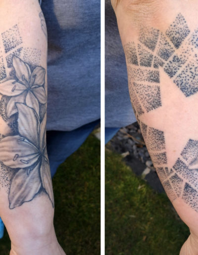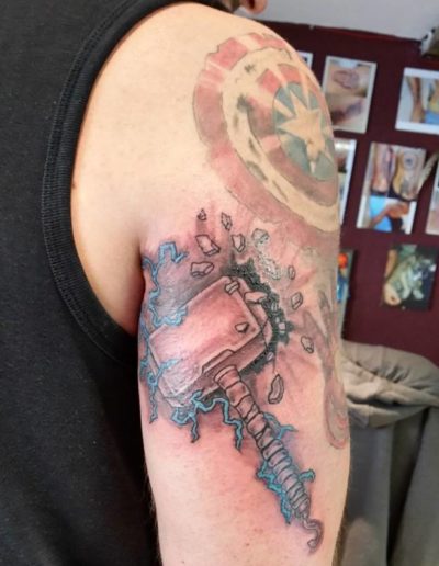 Hier eine kleine Auswahl an realisierten Projekten der letzten Jahre. Viele individuelle Tattoos aus den unterschiedlichsten Stilrichtungen, die auf Kundenwunsch entworfen und auf der Haut verewigt wurden. Hier wird besonders deutlich, dass ich mich nicht nur auf eine Richtung der Motive festlege, sondern immer für jede Idee und jeden Wunsch offen bin. Lass Dich gerne hier von den Bildern inspirieren. Sollte Dein Interesse geweckt worden sein, kannst du gerne telefonisch einen Termin vereinbaren und wir sprechen Dein neues Projekt in Ruhe durch und legen die Zeiten der Realisierung fest.